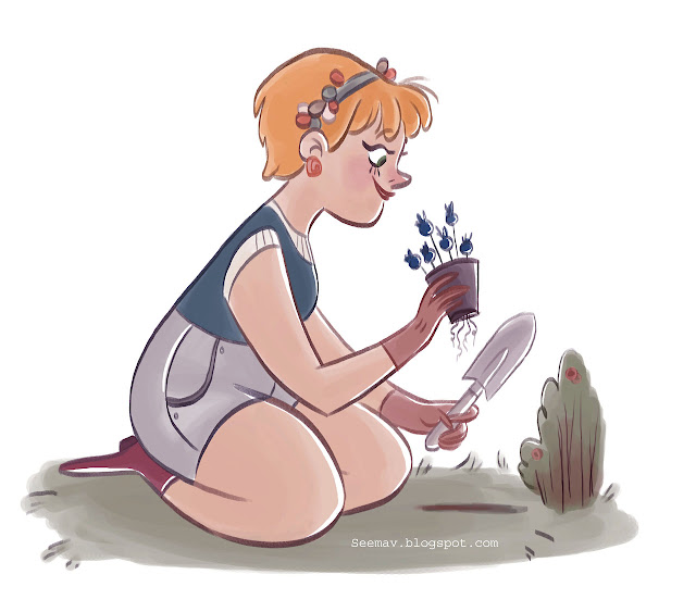 This is the last illustration that I have for now of "Girls in the Garden". I was trying to incorporate girls of all shapes, colours and sizes in each of these illustrations and clearly I'm still far from my goal! But i need to move on to other things so I'll most likely continue this series of illustrations in between those other projects :).